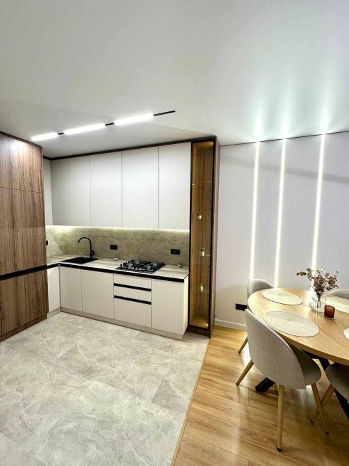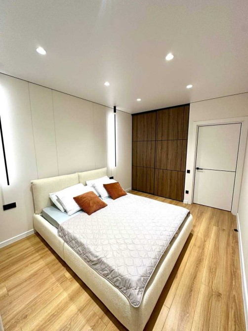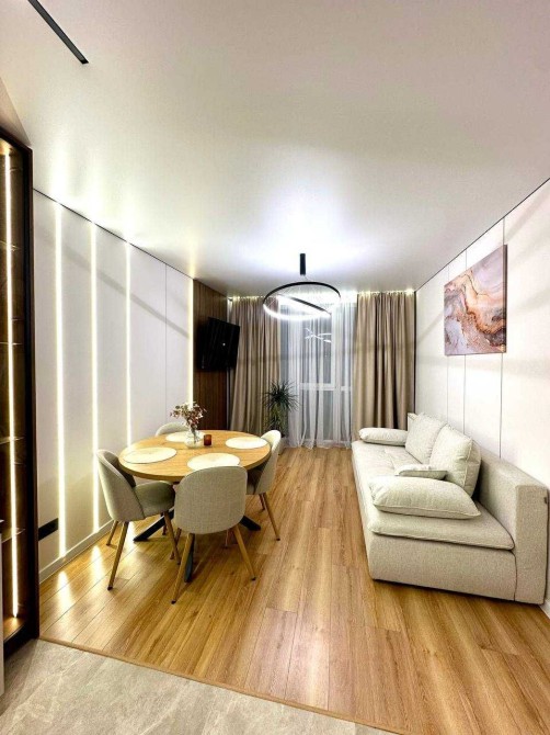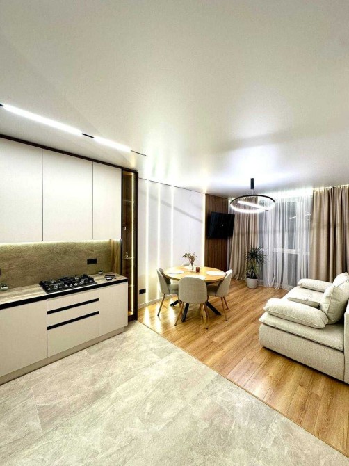 В квартирі зроблено сучасний дизайнерський ремонт, багато елементів освітлення та декору: