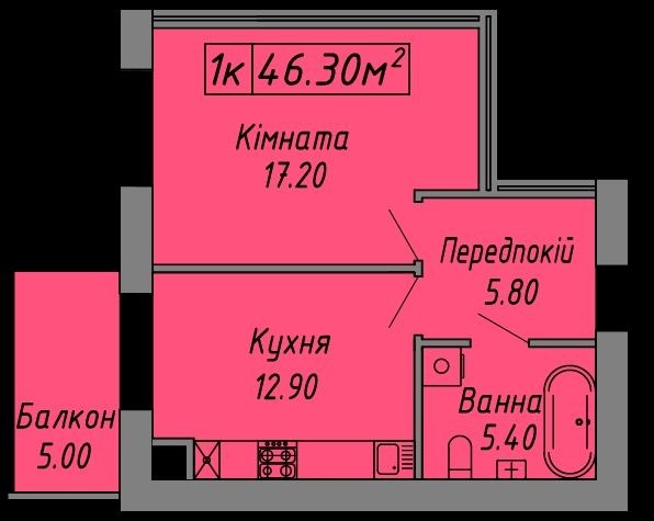 Площа: 46,3 м²