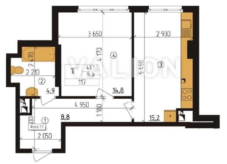 • Площадь кухни 15 м2