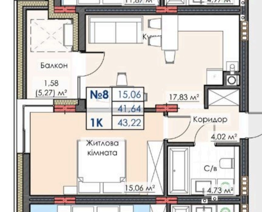 • Общая площадь 43.26 м2