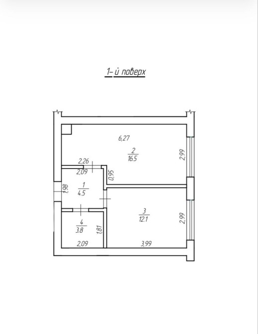 • Общая площадь 38 м2