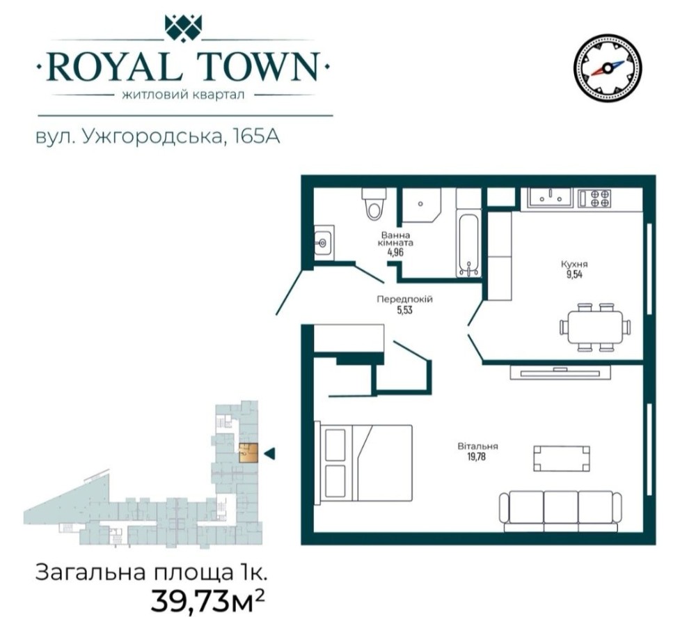 • Общая площадь 39.73 м2