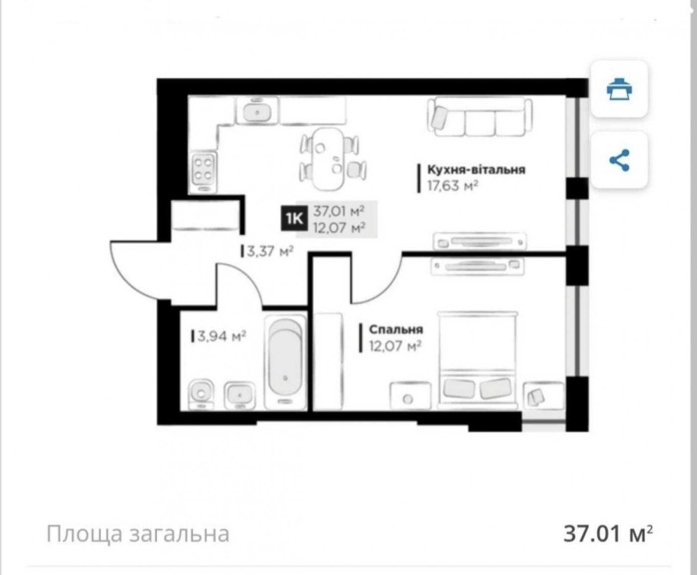 • Общая площадь 37 м2