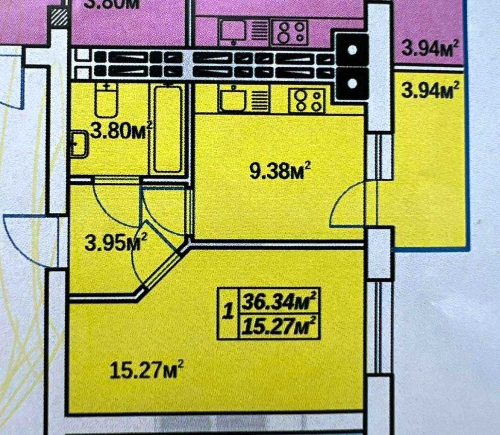 1-кім.- 38 м2