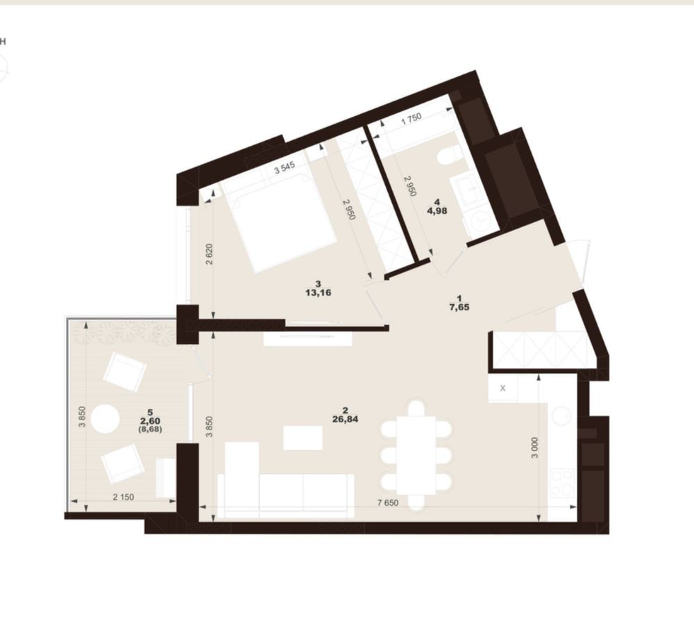 • Площадь кухни 26.84 м2