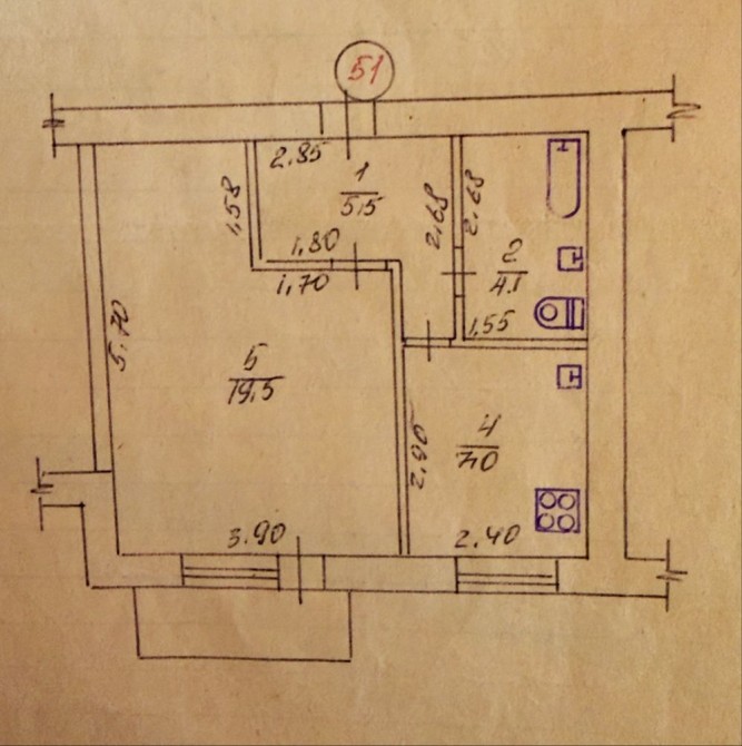 Загальна площа квартири-37,1м2, кімната-19,5м2 ,опалення централізоване.