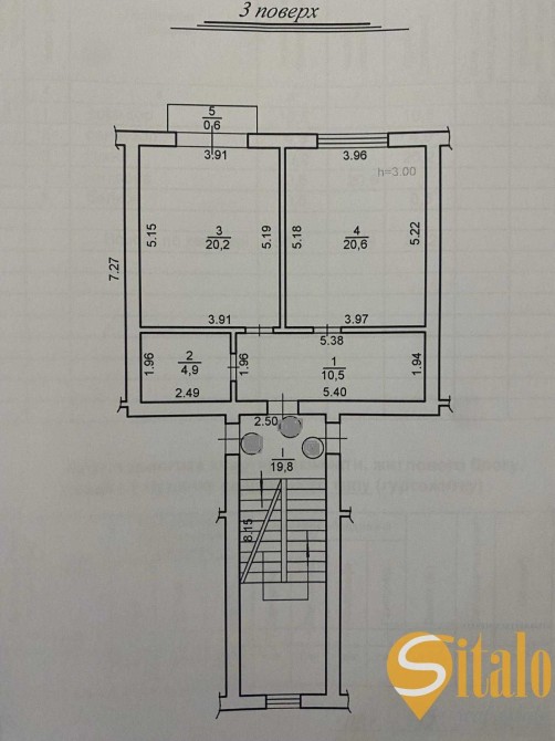 Загальна площа квартири 57 м.кв., житлова 21 м.кв., кухня студія площею 21 м.кв. з балконом. Санвузол суміжний площею 5 м. кв.. Висота стін 3 метри.