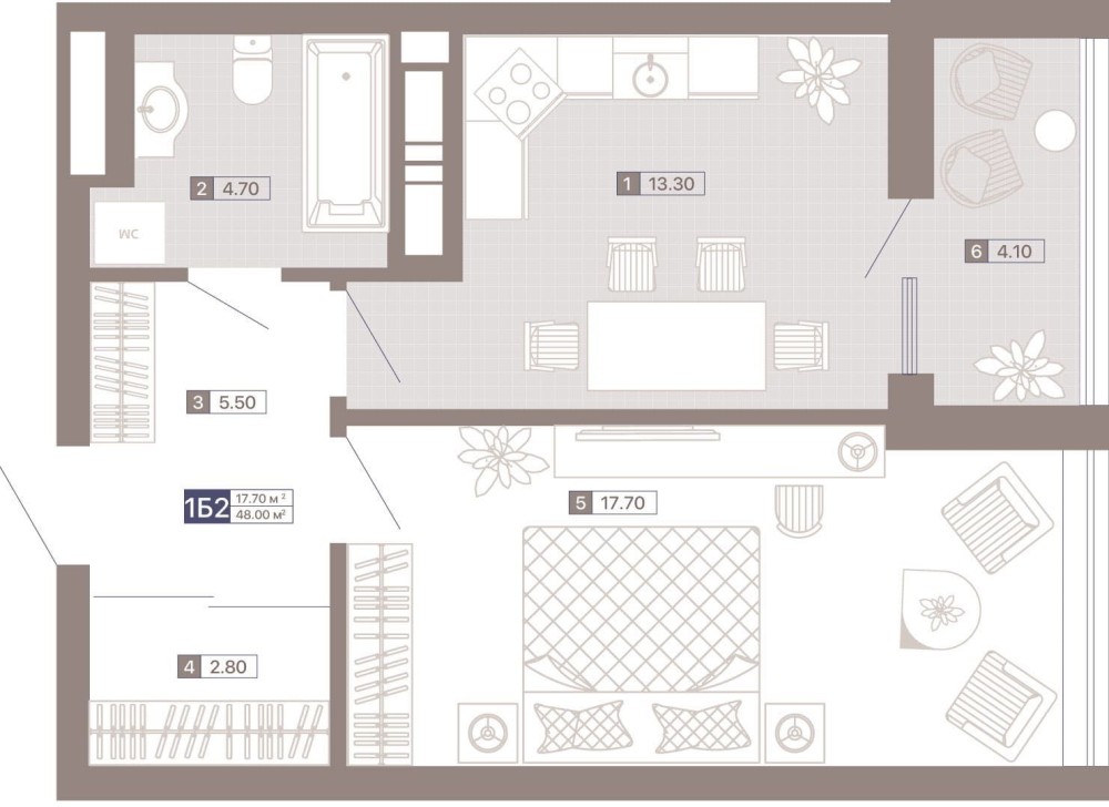 • Общая площадь 48 м2