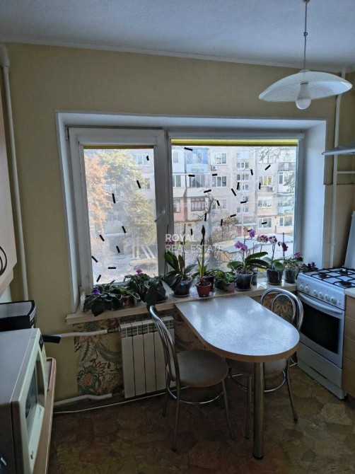Вид з вікон на зелену зону, весною багато дерев квітнуть (бузок, вишня, акація). Орієнтація вікон східна. Влітку сонячні промені проникають у приміщення приблизно з 9 до 11 ранку.
