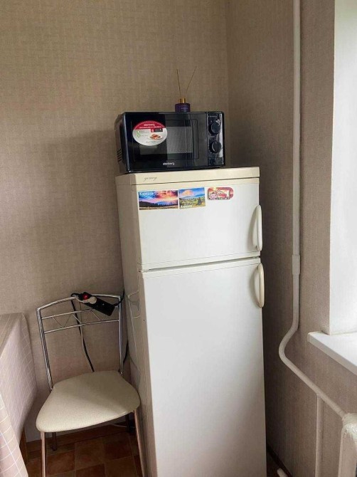Кухня обладнана газовою плитою з духовкою, витяжкою, холодильником та мікрохвильовою піччю.