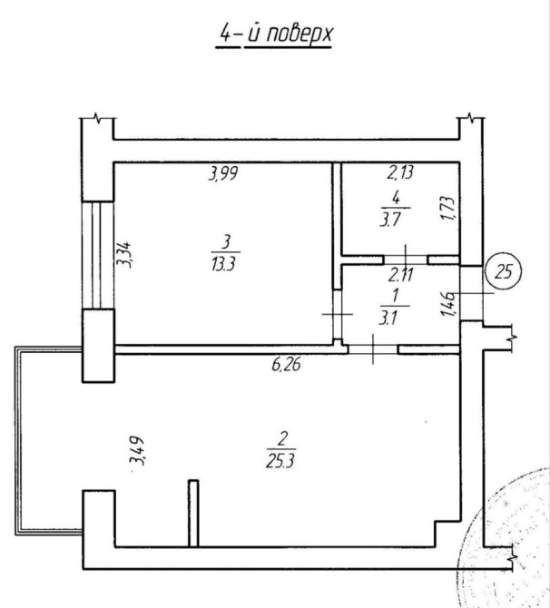 Квартира площею 44 м², розташована на 4 поверсі.