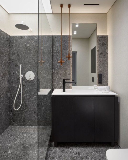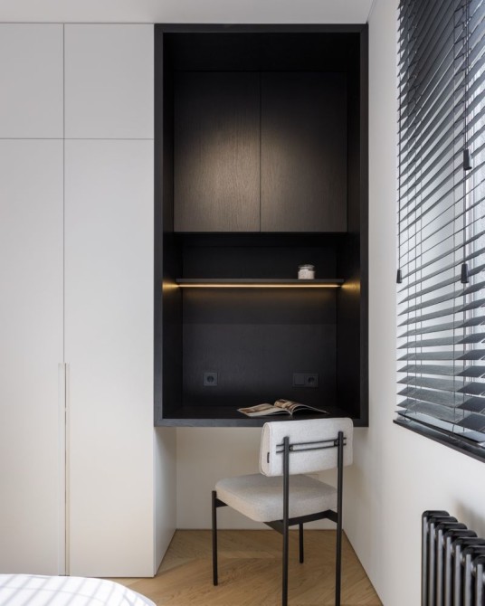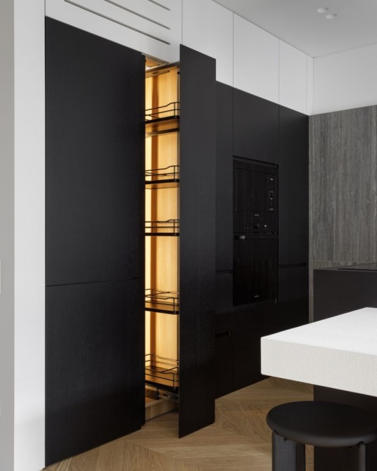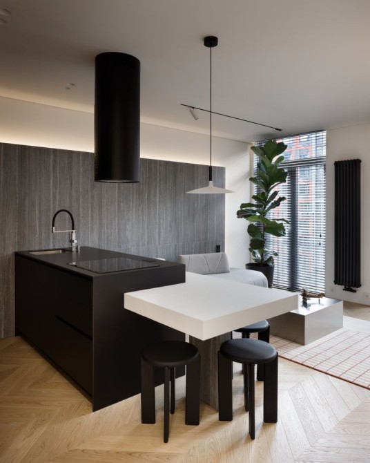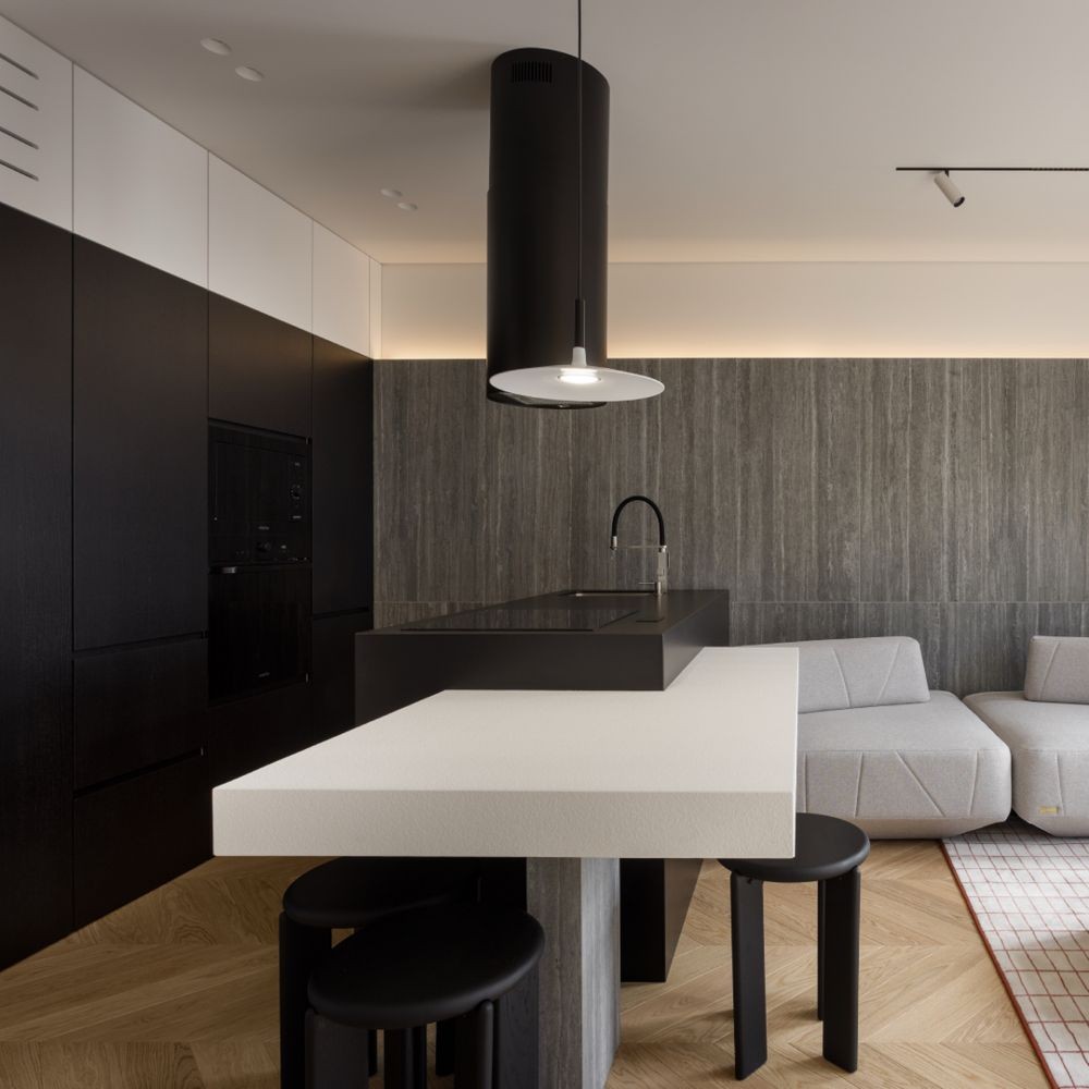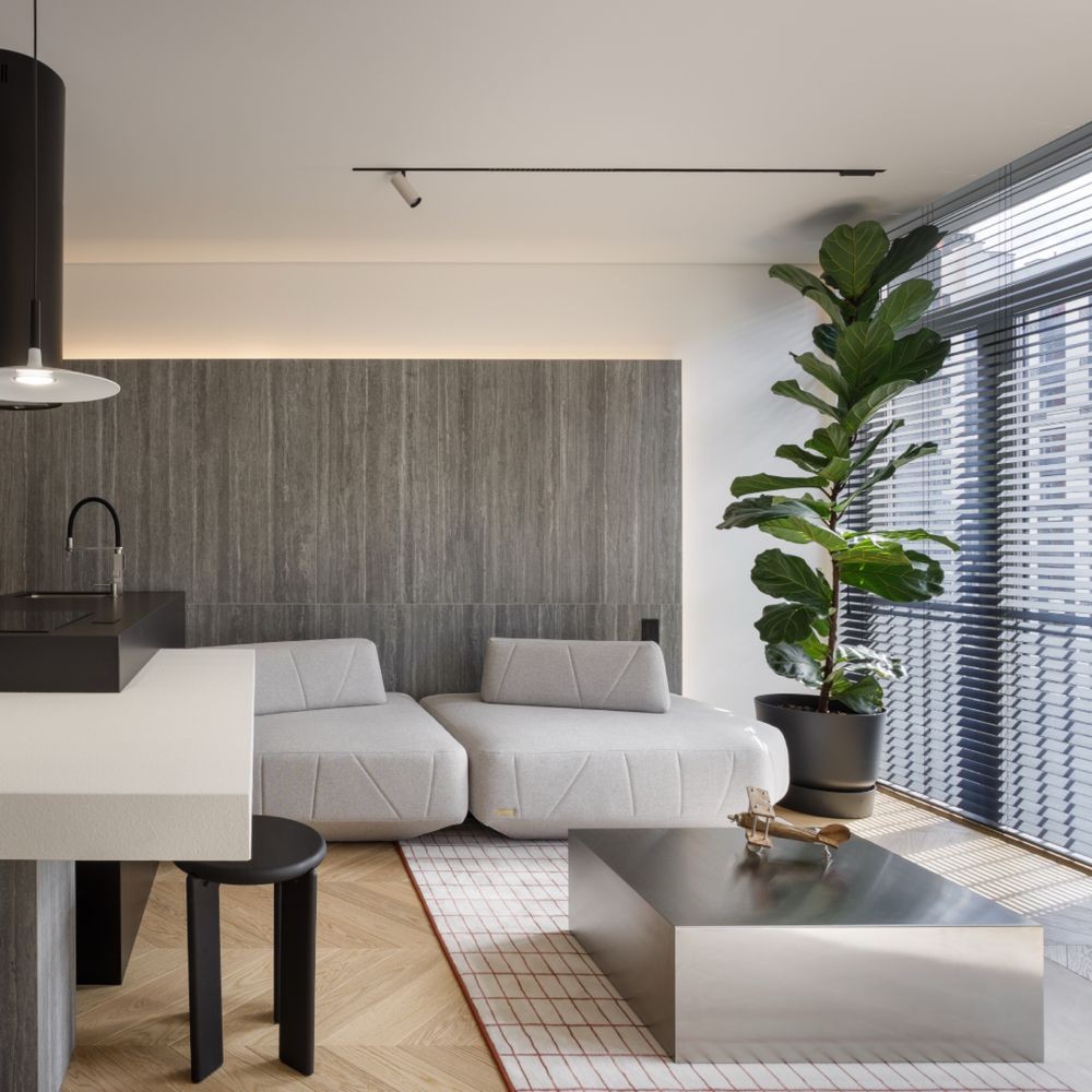 Авторський ремонт в строгих тонах з використанням високоякісних матеріалів (деревʼяні елементи, шпон, камінь, метал). Тут все продумано та зроблено для справжнього комфорту. Планування: