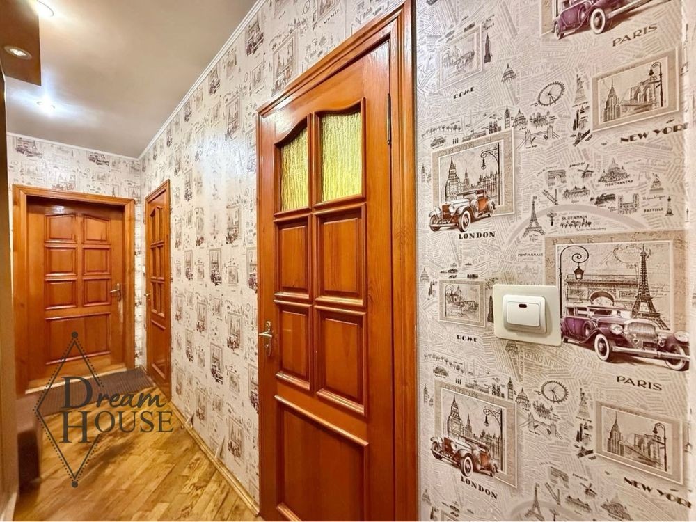 Квартира має зроблений ремонт, замінені проводка та труби, стіни вирівняні, стелі підвісні зі гіпсокартону, на подіяло зі покладено паркетну дошку, двері встановлені деревяні, вікна - металопластикові.