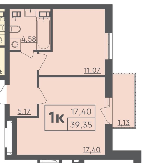 • Общая площадь 39 м2