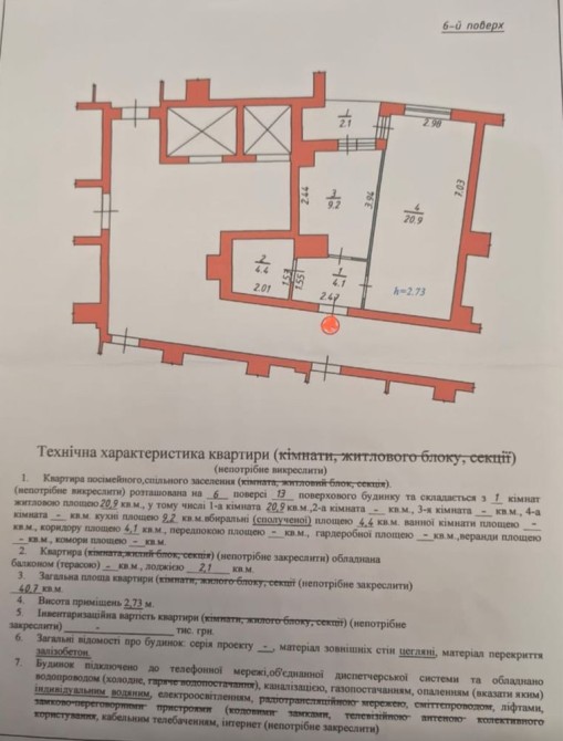 Площа квартири 41м.кв