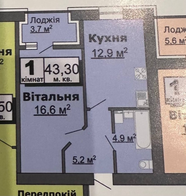 Також є квартира на 5 поверсі з таким же плануванням та квартири 44,9 та 53 м2.