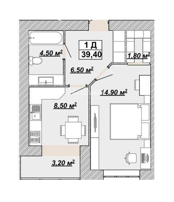 • Площадь кухни 8.5 м2