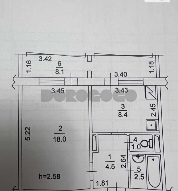 Загальна площа квартири 42.5 кв.м. 18 кв.м.