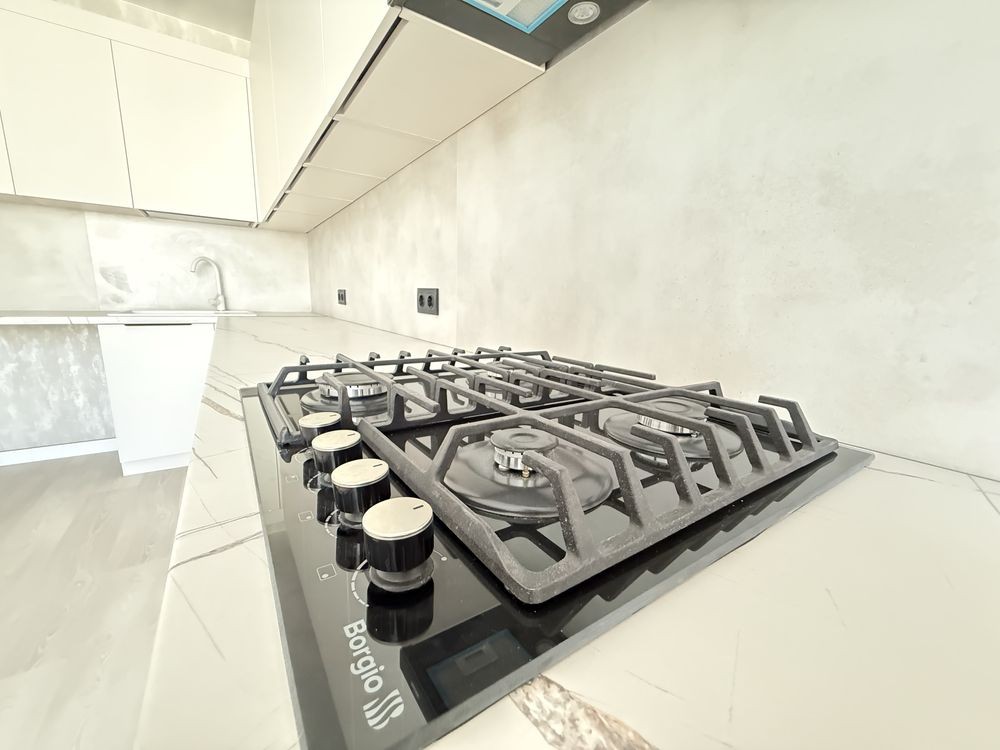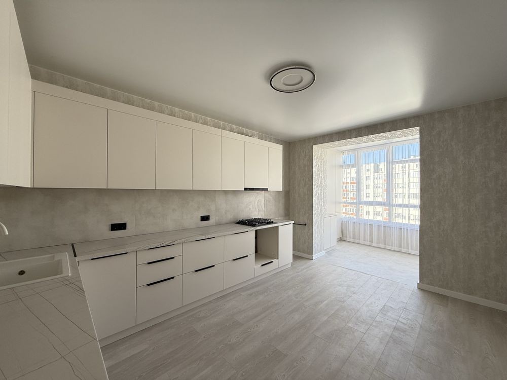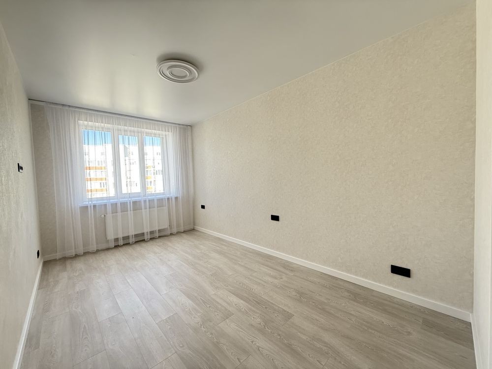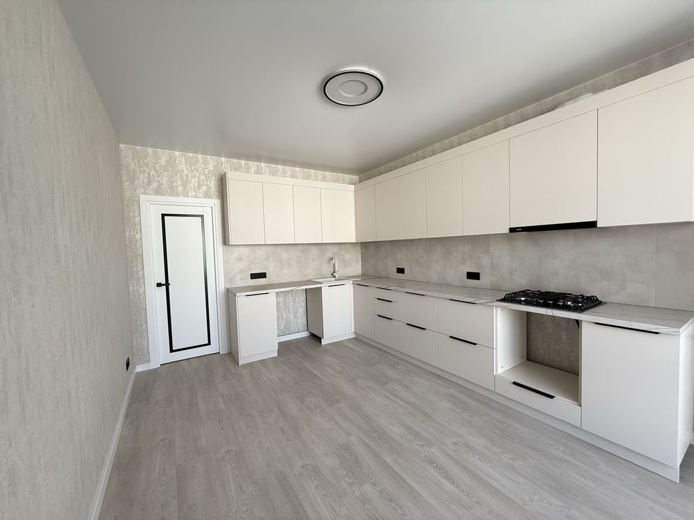 Ремонт виконаний у приємних світлих відтінках, виглядає стильно та сучасно. Ніхто не проживав — квартира абсолютно нова.