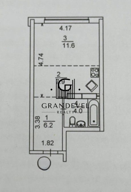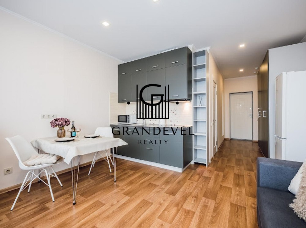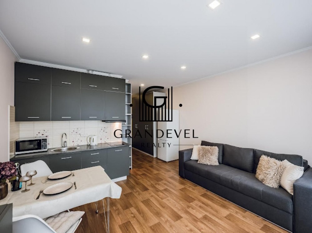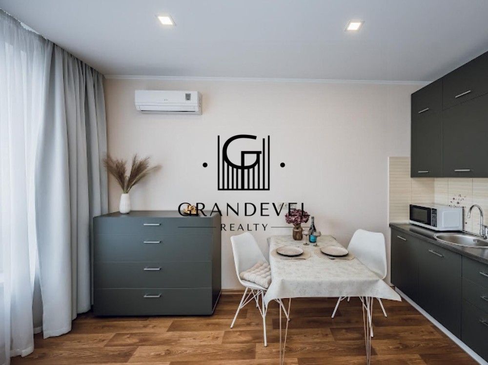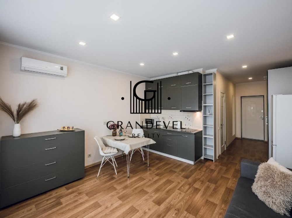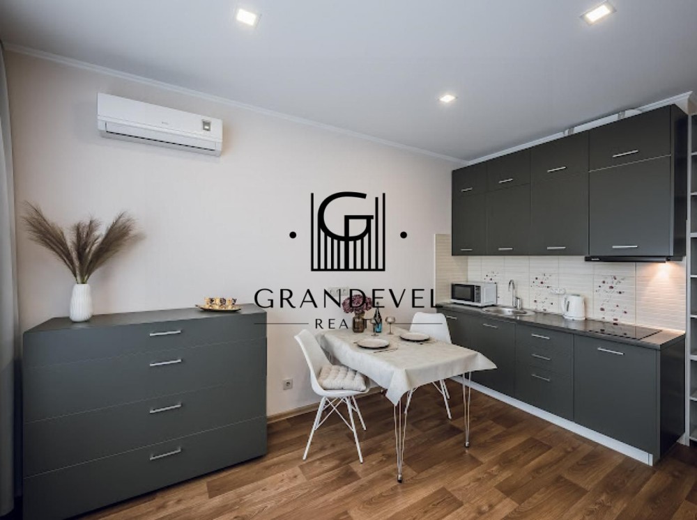 Квартира має функціональне планування: простора студія з зонуванням житлової та кухонної частини, суміжний санвузол.
