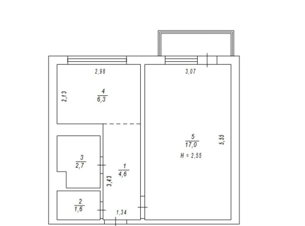 Площа квартири 33м.кв + балкон 3м.кв.