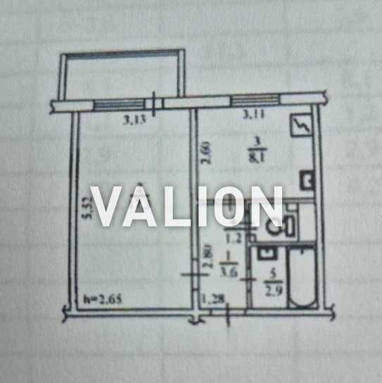 Площа квартири - 36.1/17.4/8.5 кв.м.