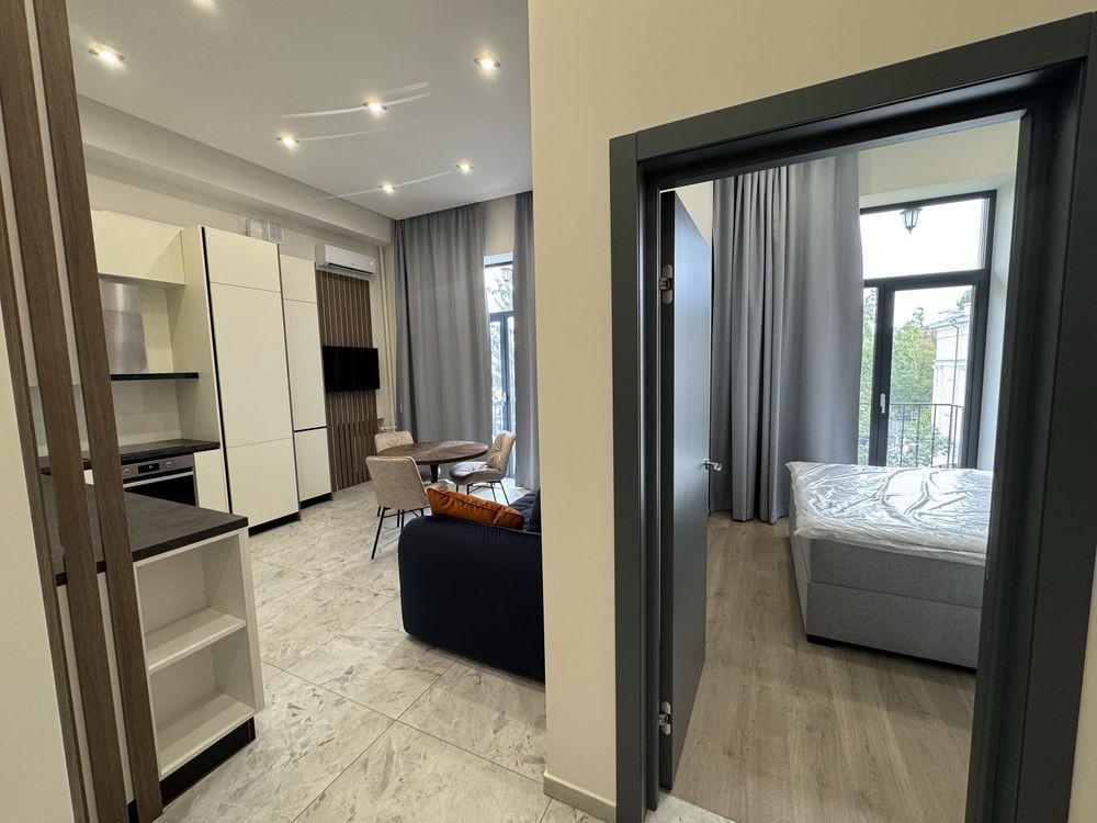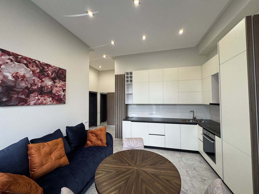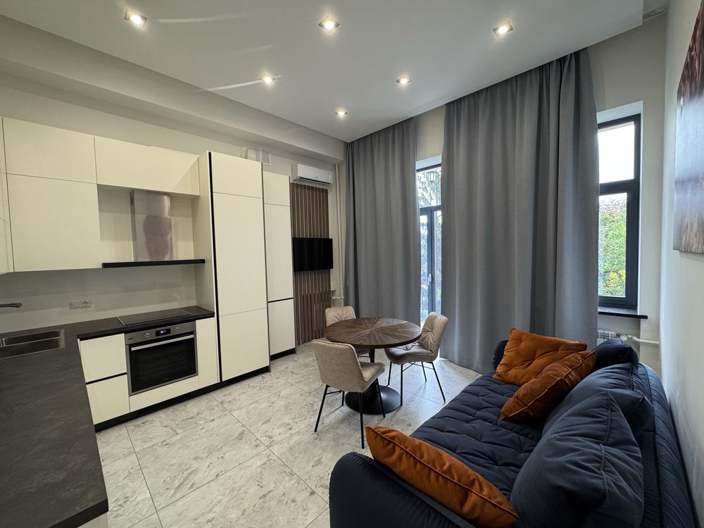 - загальна площа квартири 42,3 м2. Кухня-студія 23,4м2 і окремо спальня.