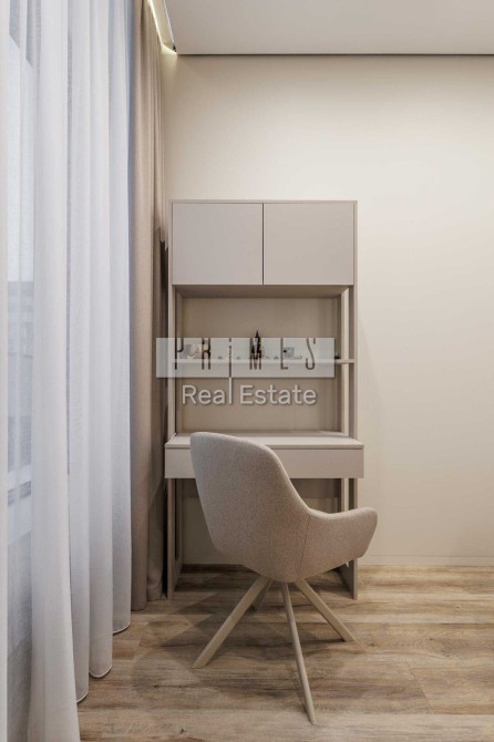 Повністю укомплектована меблями та всією необхідною технікою для життя без зайвих турбот: вбудований холодильник, індукційна плита, духова шафа, мікрохвильова піч, посудомийна машина, пральна та сушильна машини, телевізор, витяжка, бойлер. Додатково встановлені система очищення води та центральне кондиціонування, що забезпечує комфорт у будь-яку пору року.