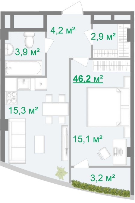 • Общая площадь 46 м2