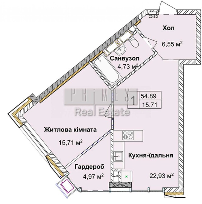 • Общая площадь 54.89 м2