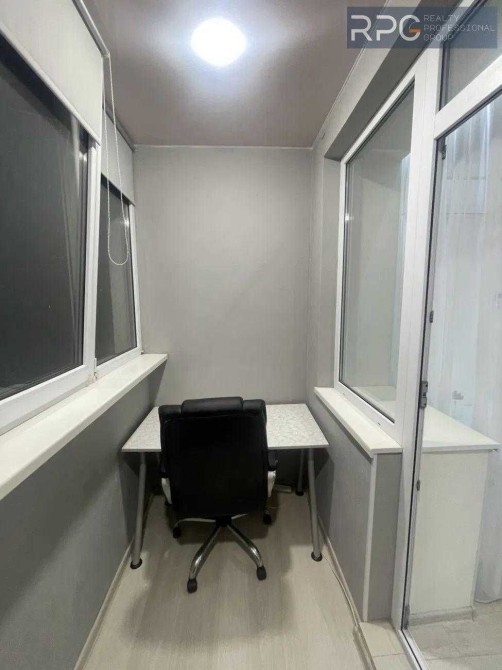 З кухні є вихід на засклений балкон, що перероблений в міні робочий кабінет.