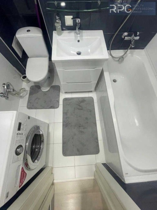 Санвузол суміжний з пральною машиною та ванною замість душу.