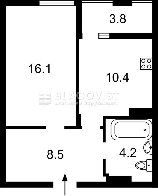 Квартира має гарне функціональне планування: простора кухня-вітальня, окрема спальня, сумісний санвузол, гардеробна при вході.