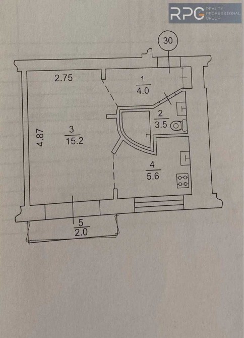 Площа: 30,2 м² / 15,2 м² / 5,6 м²