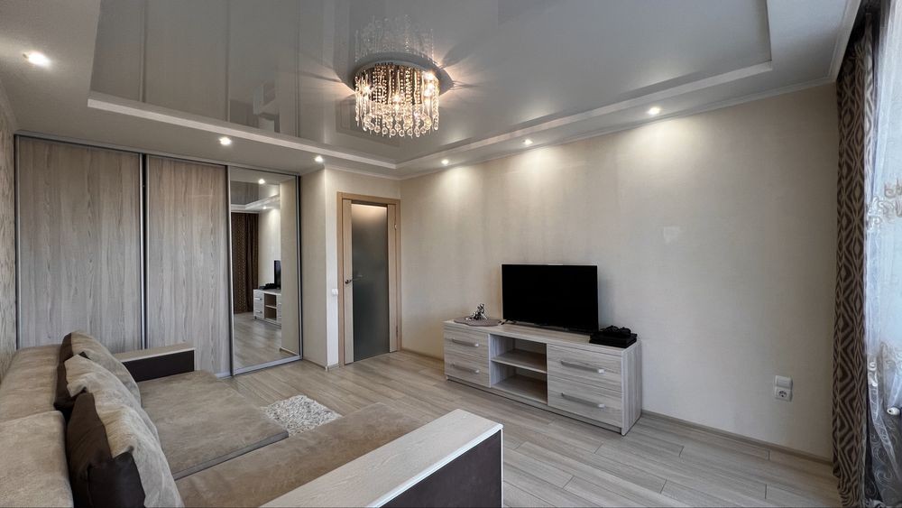 Квартира повністю мебльована, є балкон та шафа-гардеробна, в кухні, ванній кімнаті та коридорі зроблена тепла підлога.