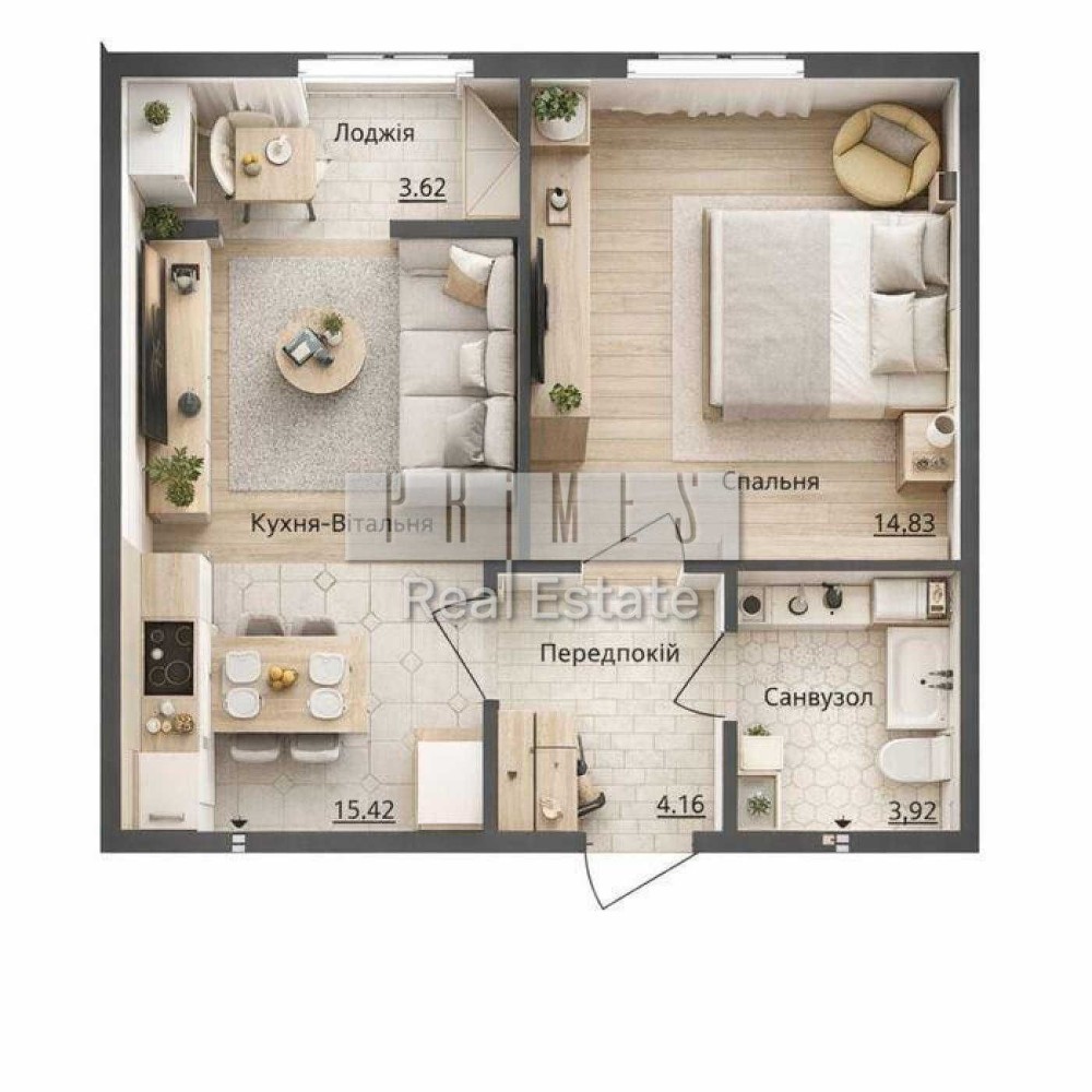 Площа кімнати - 15, 3 м²