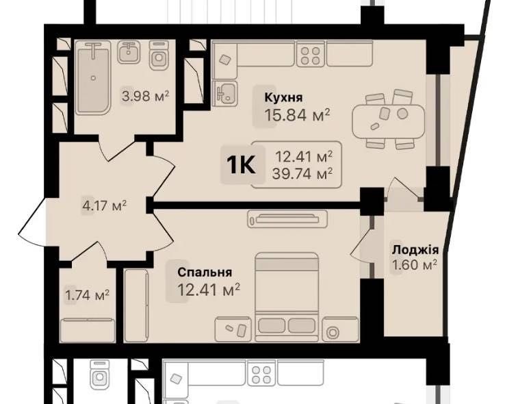 • Общая площадь 40 м2