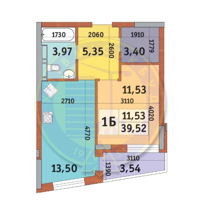 • Общая площадь 39 м2