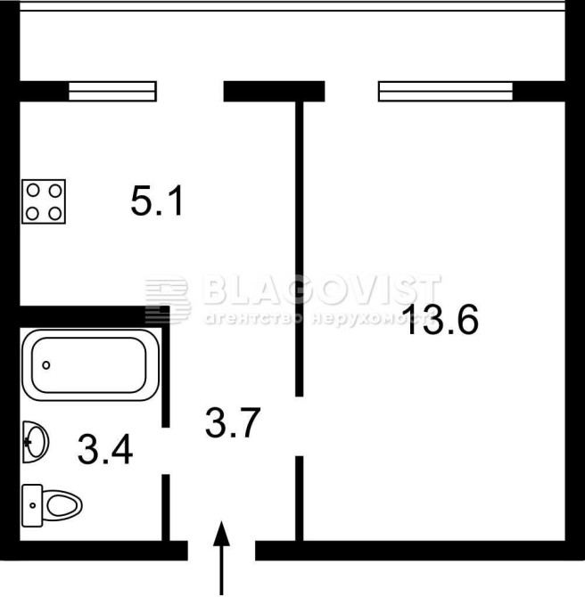 • Площадь кухни 5.1 м2