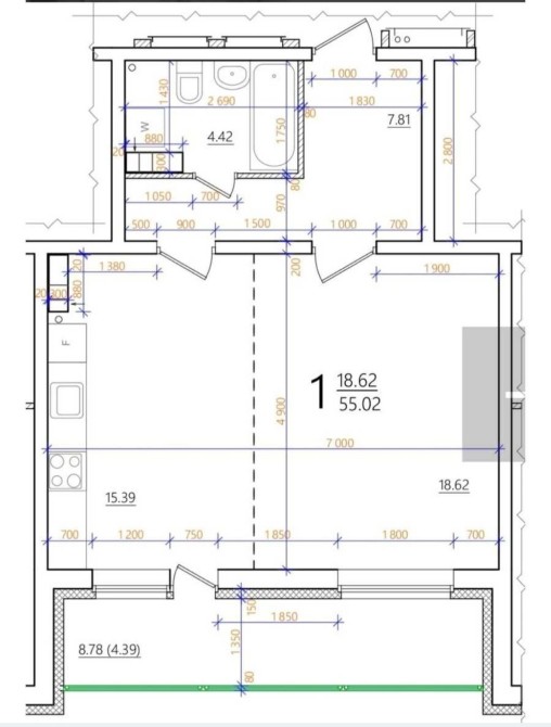 • Общая площадь 55 м2