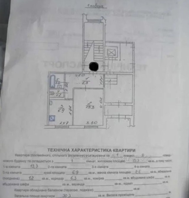 Загальна площа - 30.3м2.