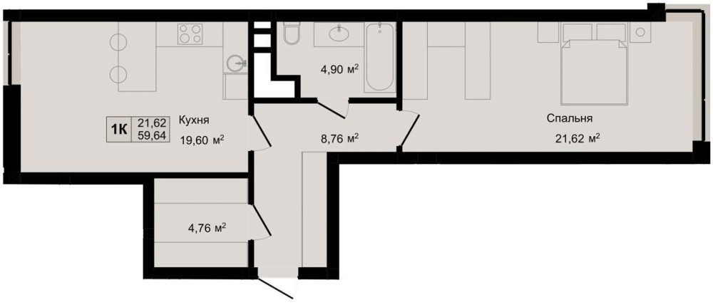 • Общая площадь 59.64 м2