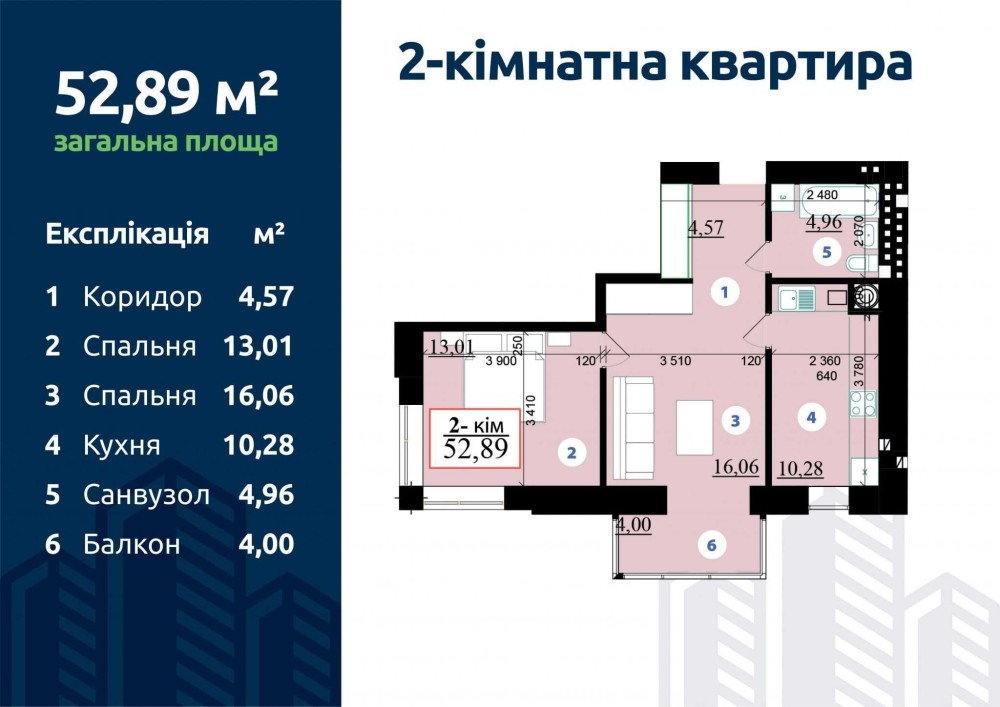 Продаж 2-к квартири площею 52.8м2 в ЖК Липки-2 - фото 3