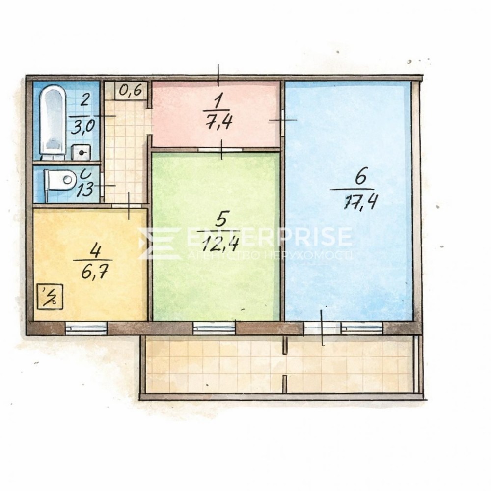 • Общая площадь 55.6 м2