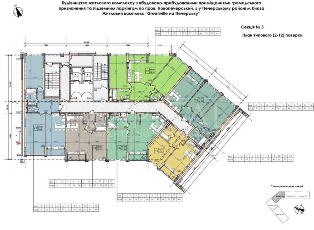Пропонується на продаж простора квартира загальною площею 81м2 у житловому комплексі бізнес-класу Greenville на Печерську, одне з найкращих планувань. Квартира розташована на 9-му поверсі 3-ї секції в першому будинку який був введений в експлуатацію у 2021 році.