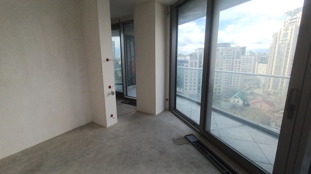 Квартира знаходиться на 7 поверсі 35-ти поверхового будинку, загальною площею 120,2м2, кількість кімнат: дві – 45м2, кухня-вітальня 30м2, тераса 25м2, два санвузла, дві гардеробні кімнати. Панорамні вікна. Тип планування 2F. Житловий комплекс преміум-класу.