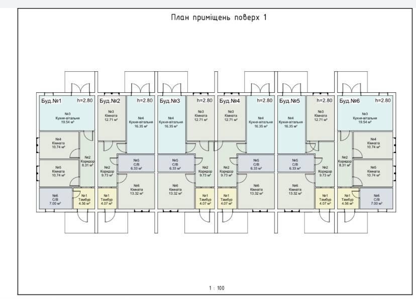 6 таунхаусів площею з гарним плануванням.