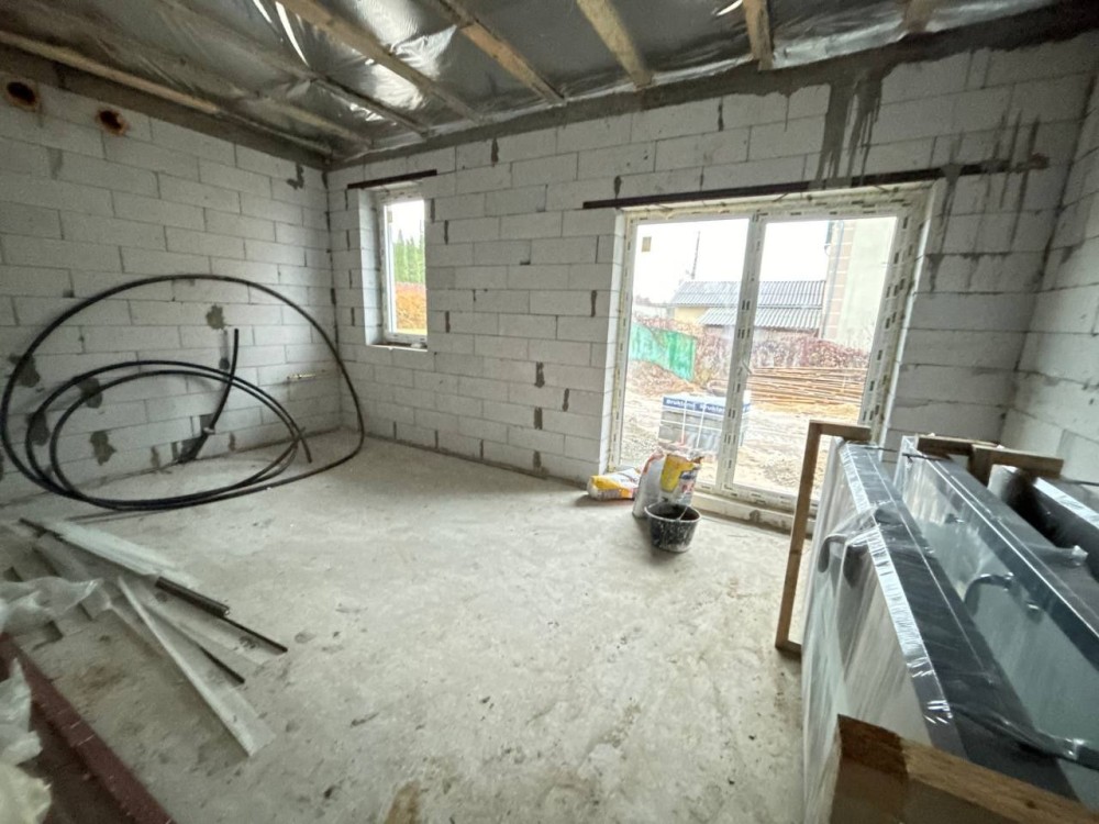 Штукатурка стін, сантехніка розведена по точкам, тепла підлога, лазерна стяжка пола.