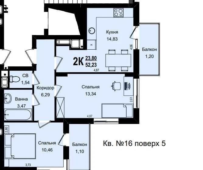 Площа 53кв.м