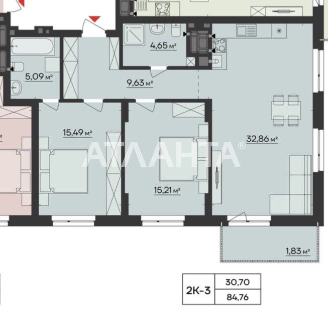 • Трехкомнатная